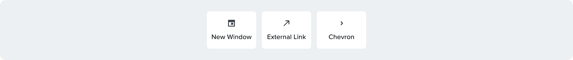 Reinforces a link. Use these only when necessary and there is a clear action. Can be placed on the left or the right of the text.
