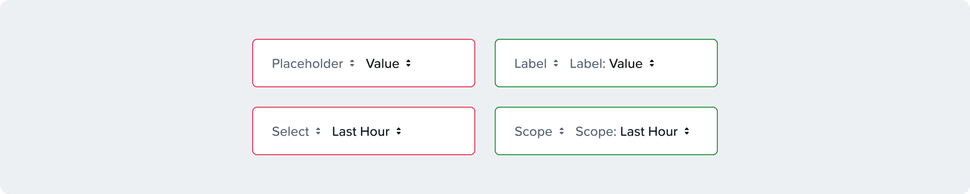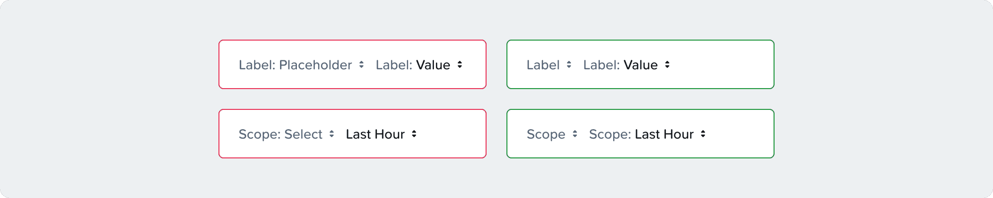 Always make sure to use a label in all miniSelects, this is an accessibility requirement. The label is part of the component and the clickable area, make sure not to add an external label to the component.